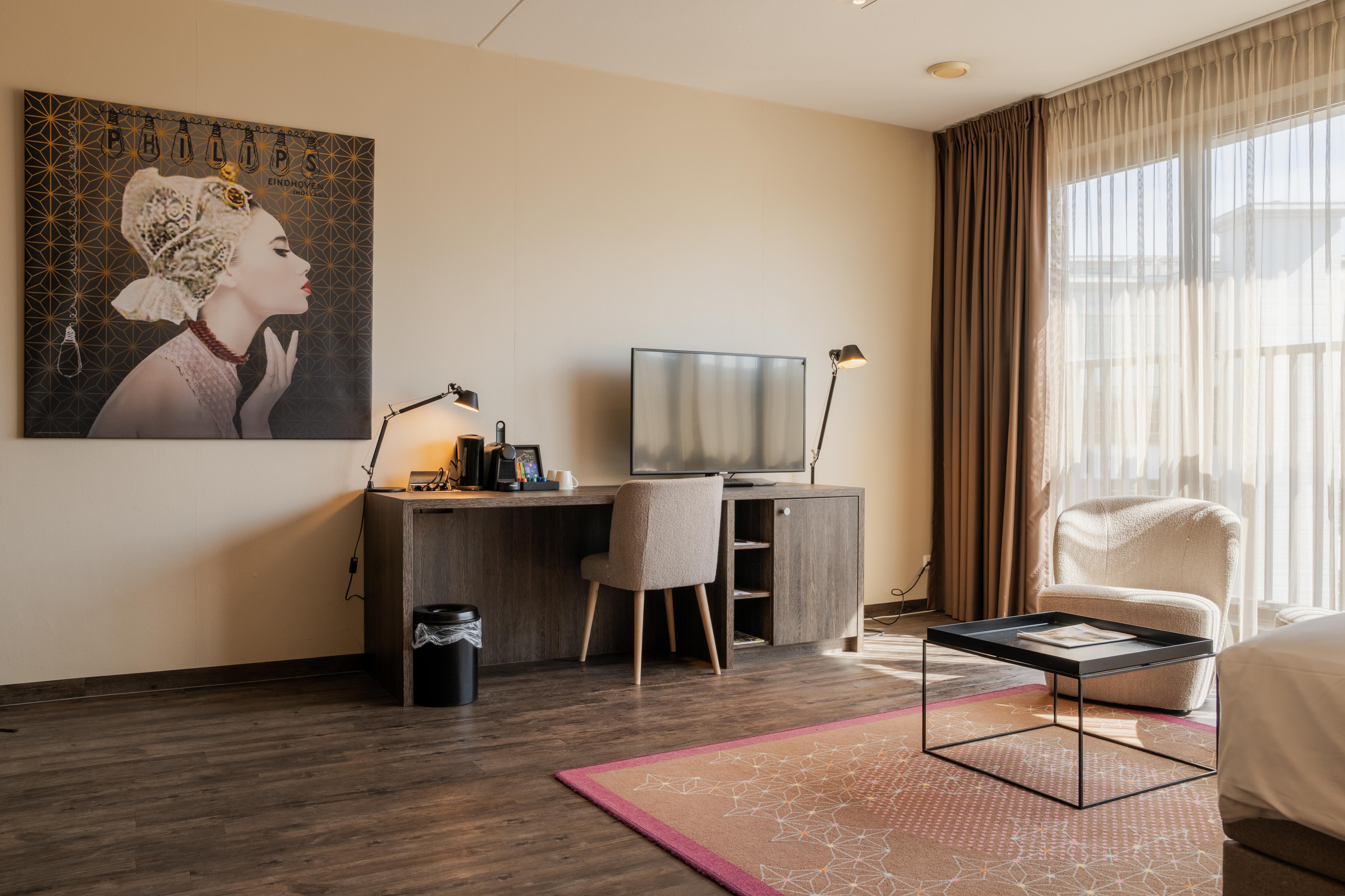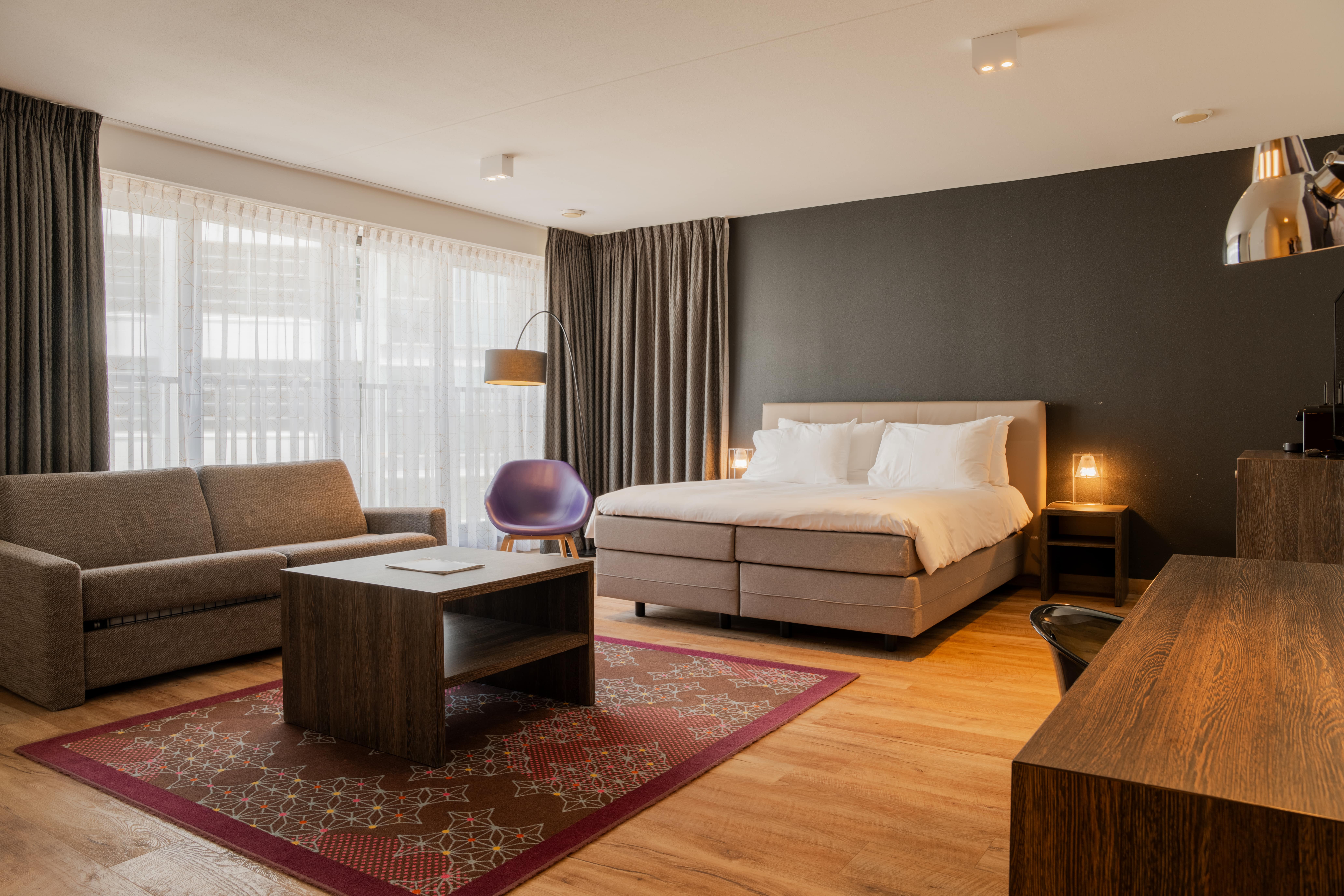 Entdecken Sie die unkonventionelle Atmosphäre des Superior Zimmers (40 m2), in der Sie überall kleine Überraschungen erwarten. Unsere Superior Zimmer sind alle unterschiedlich gestaltet, sodass jeder Besuch ein neues Wohnerlebnis bietet. Genießen Sie in jedem unserer Superior Zimmer eine moderne Ausstattung und ein komfortables Doppelbett. Die hochwertigen Badezimmer verfügen über eine Badewanne und/oder bodengleiche Dusche. Lassen Sie sich vom Charme unserer Superior Zimmer verzaubern und genießen Sie einen unvergesslichen Aufenthalt. Jedes Superior Zimmer verfügt über eine großzügige Sitzecke.