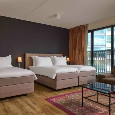 Unser geräumiges 50 m2 großes Triple Superior ist ideal für eine Gruppe von Freunden oder eine Familie. Dieses Zimmer ist mit drei bequemen Einzelbetten ausgestattet, die nebeneinander stehen oder durch einen Nachttisch getrennt sind. Das Badezimmer verfügt über eine Badewanne und/oder eine bodengleiche Dusche. Genießen Sie das Beisammensein in diesem gemütlichen, geschmackvoll eingerichteten Zimmer. Ob Sie sich nach einem erlebnisreichen Tag entspannen oder einfach nur Zeit mit Ihren Lieben verbringen möchten, dieses großzügige Zimmer bietet alles, was Sie für einen unvergesslichen Aufenthalt benötigen.